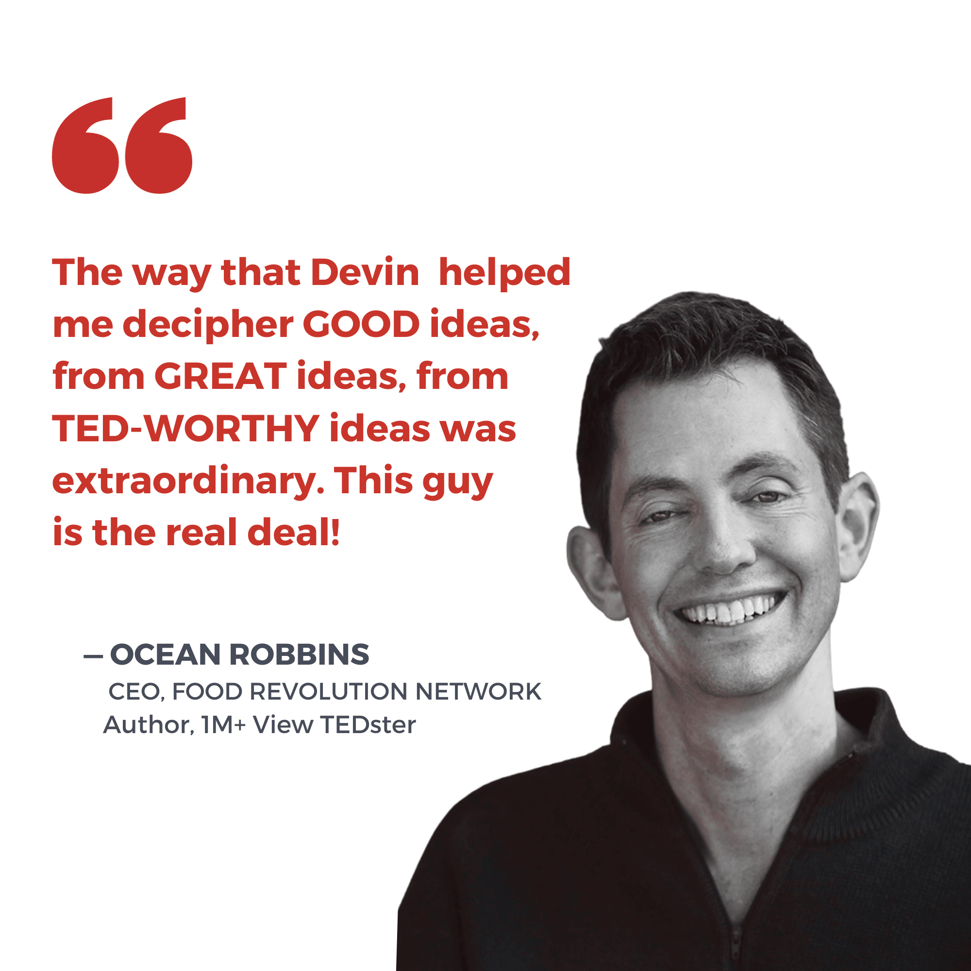 DEVIN D. MARKS is known as The TED Talk Whisperer. His firm, CONNECT to COMPEL, has served 100s of TED, TEDx, and TED-Style speakers. The result: 100s of millions of views. His team helps leaders, just like you, catalyze ideas.